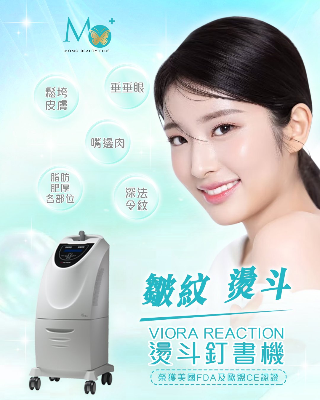 亞洲的女性,因為人種的關係多為圓臉,或U型臉;如果有天生的V型,那是感謝天…..,如果妳不是天生的V臉,又不敢打肉毒、怕打雷射的人,Reaction熨斗釘書機是妳現在變美的優選…..