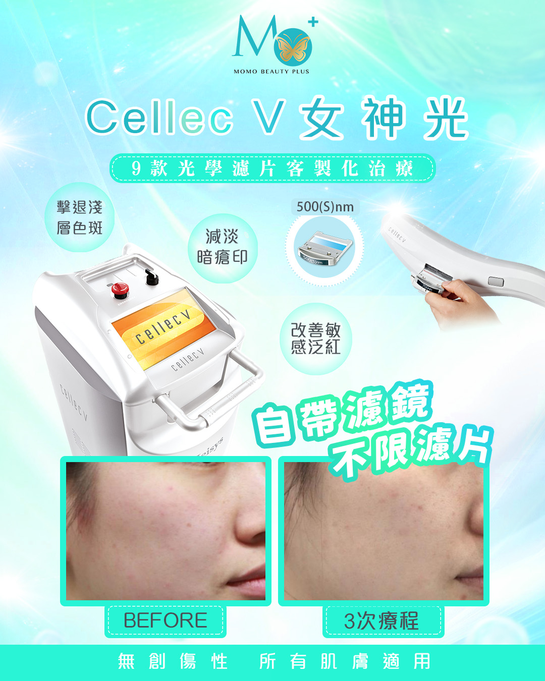 Cellec V 女神光效果:9種濾片能改善痘痘、血管、斑點等複合式肌膚問題